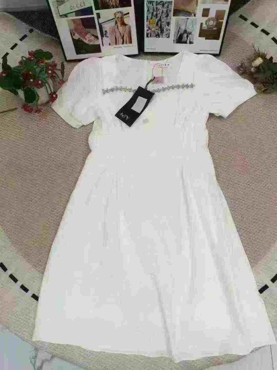 全清15.8(不分货)法式菱格镶钻方领高腰修身高级时...