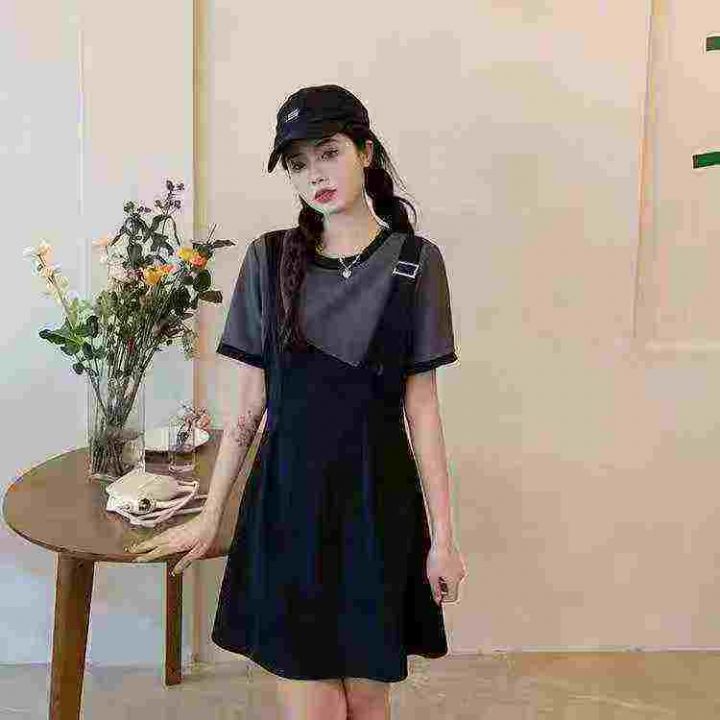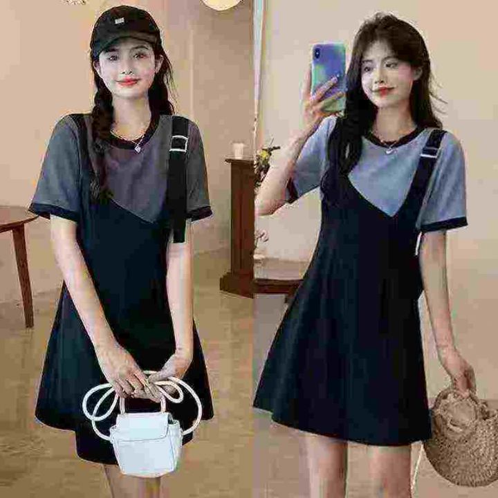 全清13.85s(不分货)韩版设计感拼接撞色假两件连衣裙,...