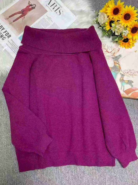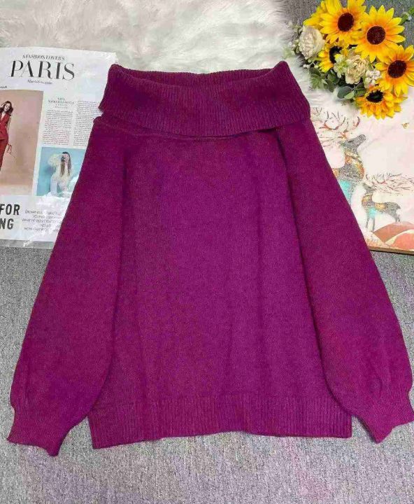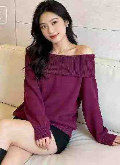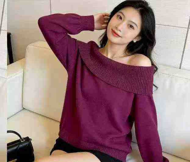 秋冬新款欧洲站欧货一字领露肩纯色高级感纯欲宽松慵懒风北极绒套头毛衣,独立包装,码数XL-4XL码, 50件,全清6.9元超低价秒杀!