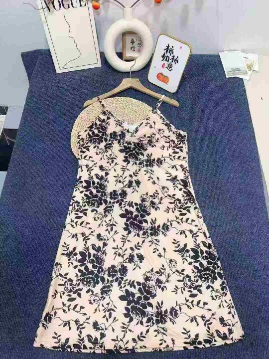 欧美跨境2025夏季短袖女式新款v领宽松版型休闲印花吊带连衣裙,数量95件,码数s-2xl,全清4.8。