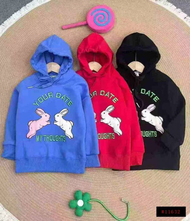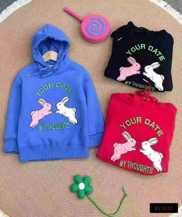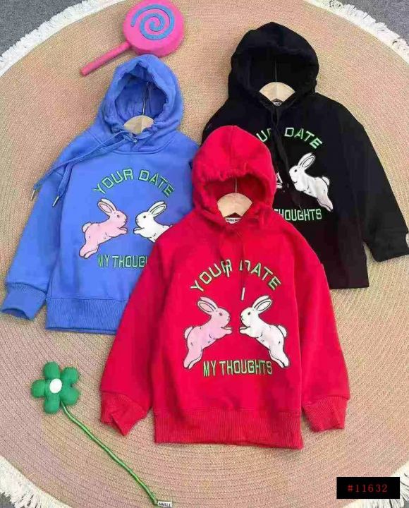1469件高品质兔子刺绣连帽加绒儿童卫衣。双层连帽设计,后领包边,面料柔软舒适,看得见的品质。码数清单看大货图,拉链式独立包装带品牌。全清7.8分货加1@_@