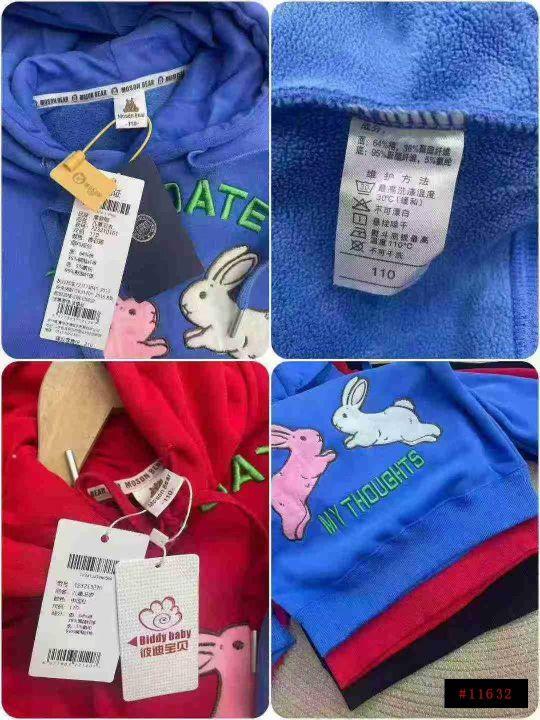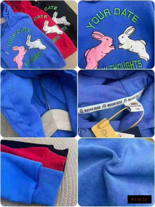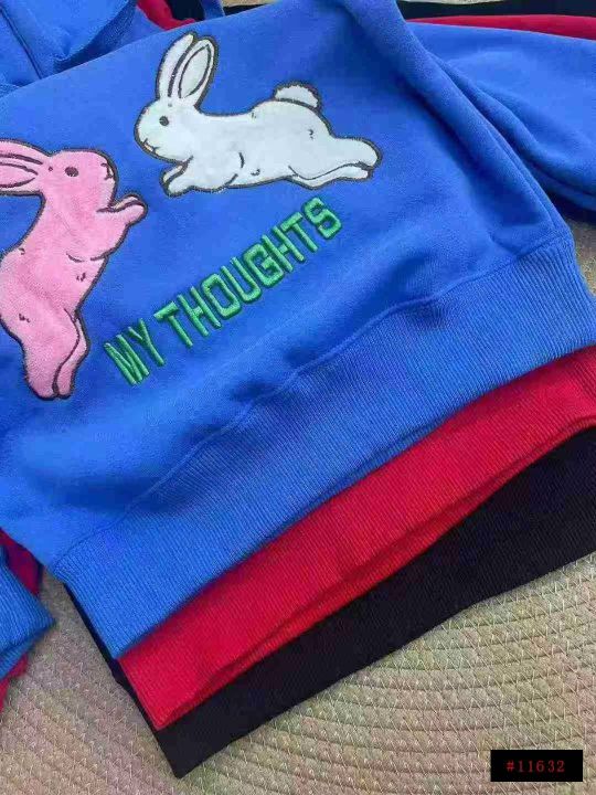 亏本清仓,不议价1469件高品质兔子刺绣连帽加绒儿童卫...