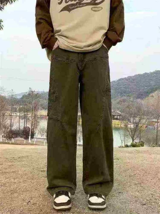 全清9.8春秋直筒毛边牛仔裤男裤脚拉链日系复古高街潮牌ins百搭工装牛仔裤...