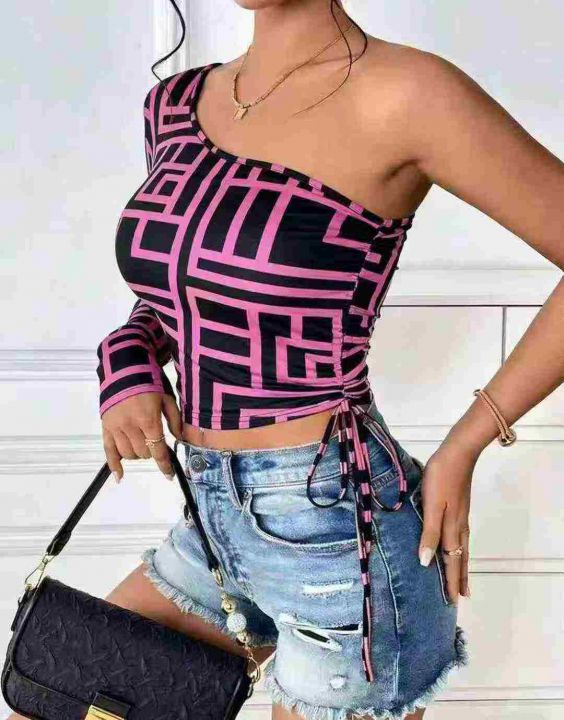 欧美露背性感亚马逊跨境系绳斜肩T,整款四色,数量 65...