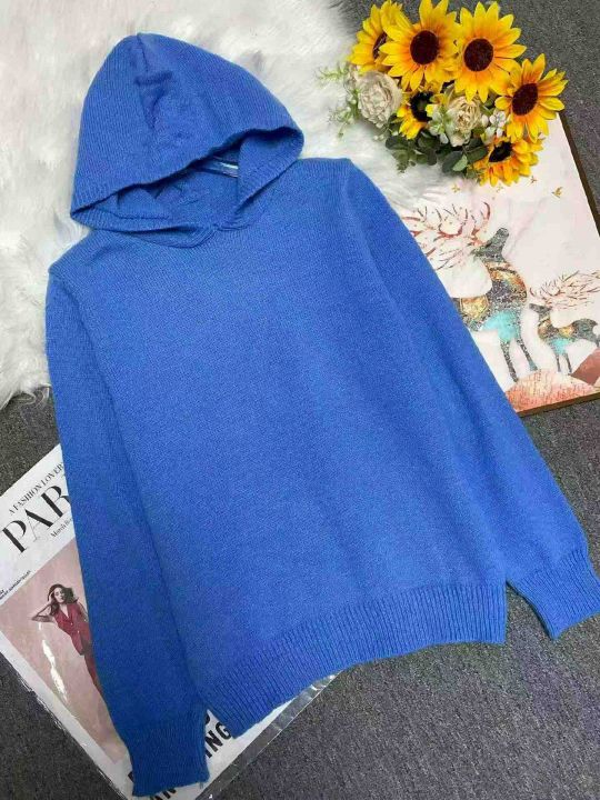 秋冬新款法式复古克莱因蓝净版简约宽松连帽包芯纱套头毛衣,独立包装,均码年龄软糯舒适弹力大,140件,全清8.9元超低价秒杀!