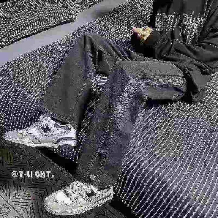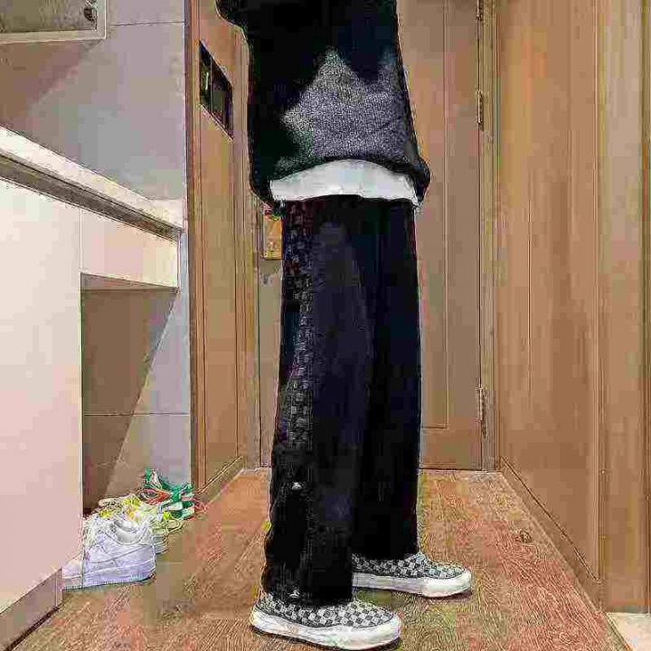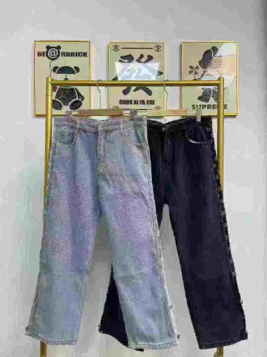 天猫在售款600件左右高品质美式潮牌高街棋盘格加绒加厚阔腿牛仔裤,单款两色,S-3XL,独立包装带吊牌