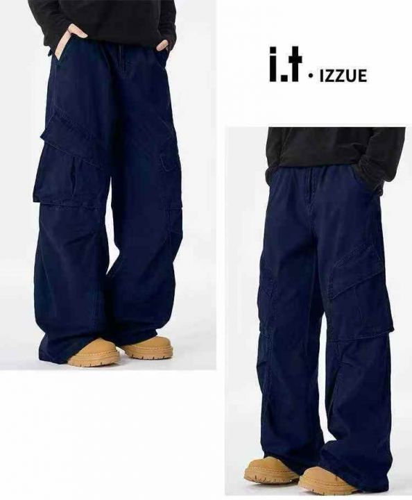 美式复古百搭设计感工装裤男女同款宽松休闲褶皱弯刀裤,1400件,独立拉链袋...