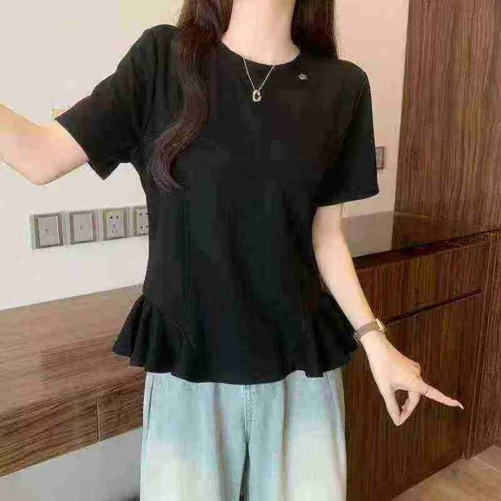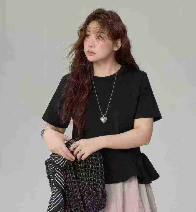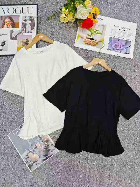 电商仓回收530件高级小众独特设计感花朵下摆大码纯色短袖T恤,码数XL-4XL。面料柔软有弹性,款式好看,有独立包装。分货➕1