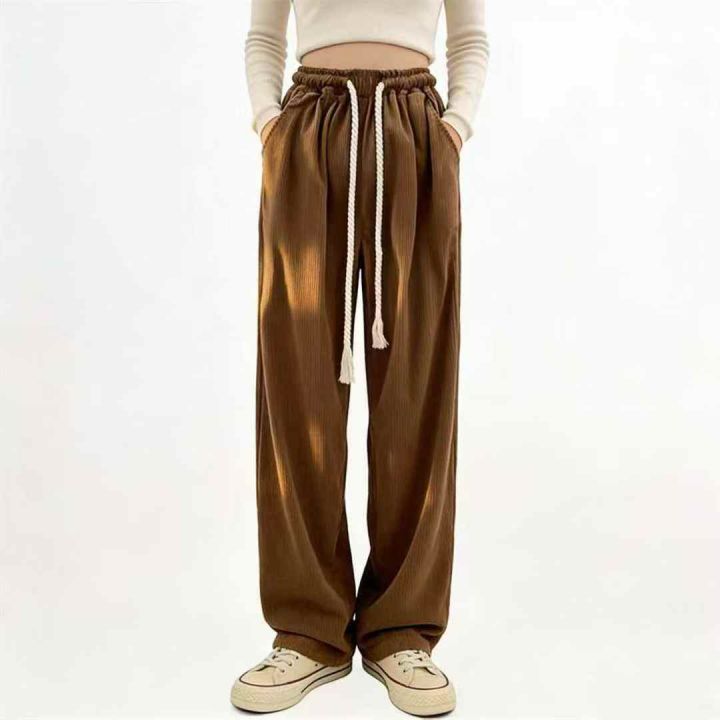 全清7.8厚款灯芯绒裤子男女同款,松紧腰粗绳直筒阔腿...
