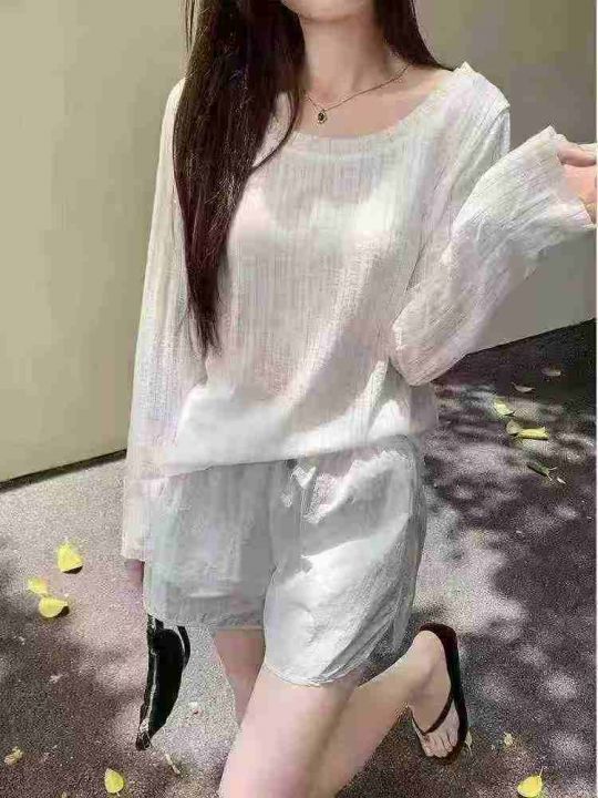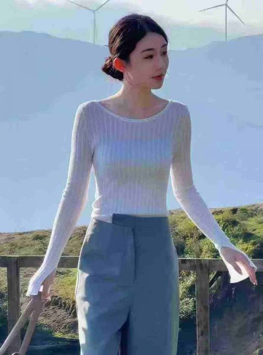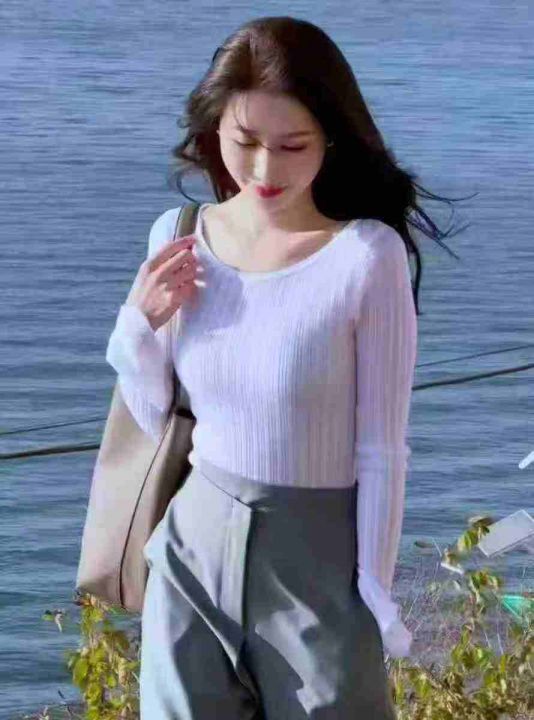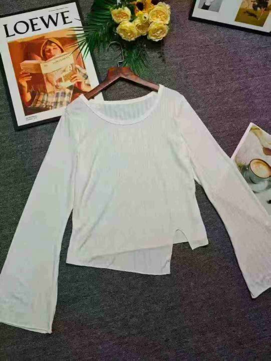 工厂回收582件韩系靓妹白色打底衫不规则设计感长袖T恤,码数S-2XL。面料有弹力,全部独立包装。分货+0.5