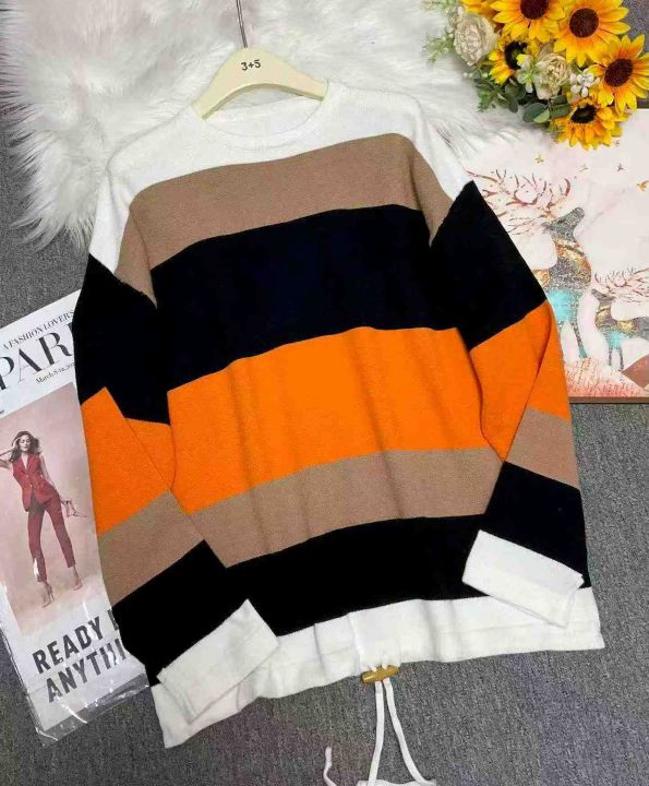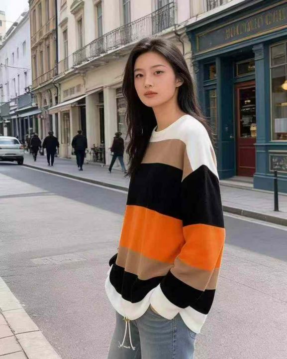 捡漏款,春秋新款宽松大版撞色条纹设计款圆领包芯纱套头毛衣,独立包装,码数XL--4XL码,56件,全清7.9元超低价秒杀!