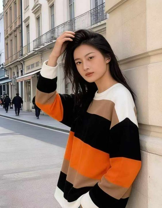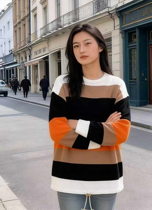 捡漏款,春秋新款宽松大版撞色条纹设计款圆领包芯纱套头毛衣,独立包装,码数XL--4XL码,56件,全清7.9元超低价秒杀!