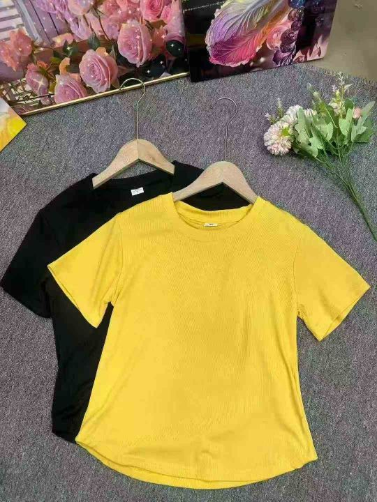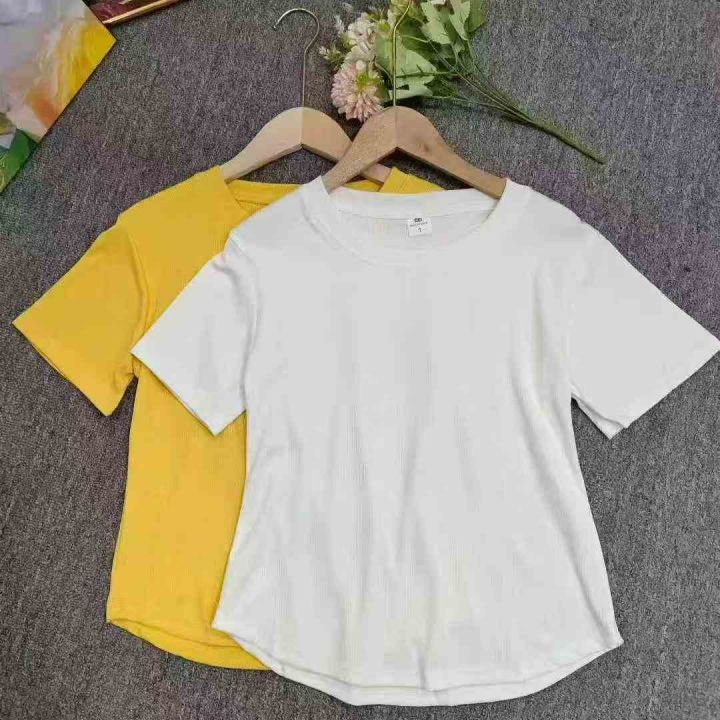 新款不规则短袖复古气质圆领修身弧形下摆螺纹T恤女,整款4色,有后领包边,1-5码,独立包装,弹力超大,900件左右,5.8清,分加1