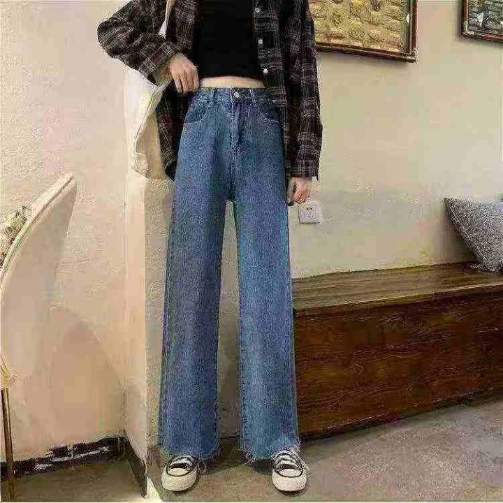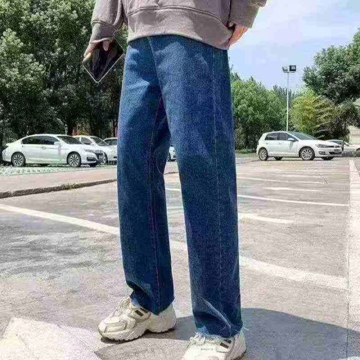 春秋新款男女同款宽松净版百搭直筒阔腿牛仔裤,独立包...