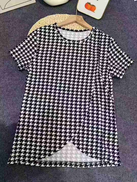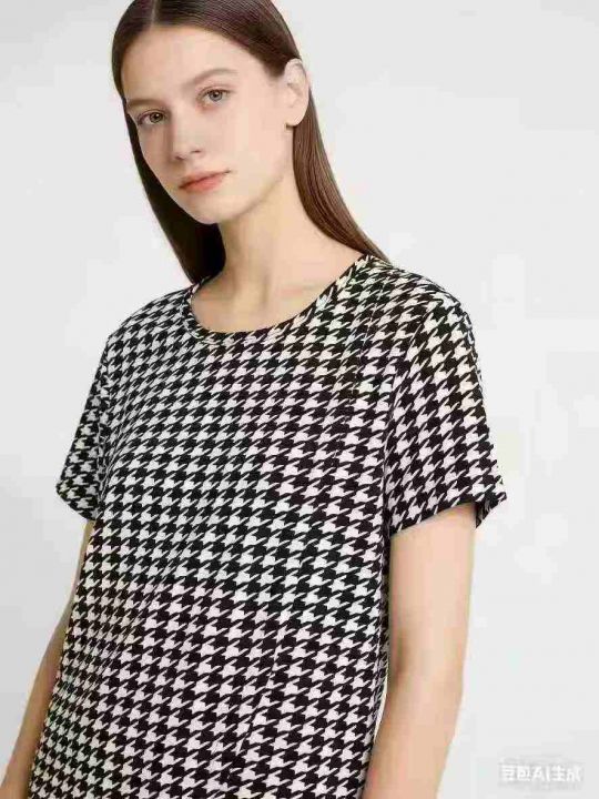 千鸟格短袖T恤上衣女2025春夏新款圆领简约时尚百搭,独立包装,码数s到2xl,全清3.5。