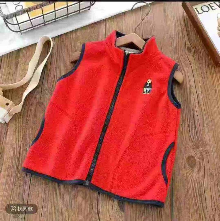 卡通小熊儿童摇粒绒马甲春秋装薄款背心男女宝宝坎肩,独立包装带吊牌,100-160码,250件,全清6.8