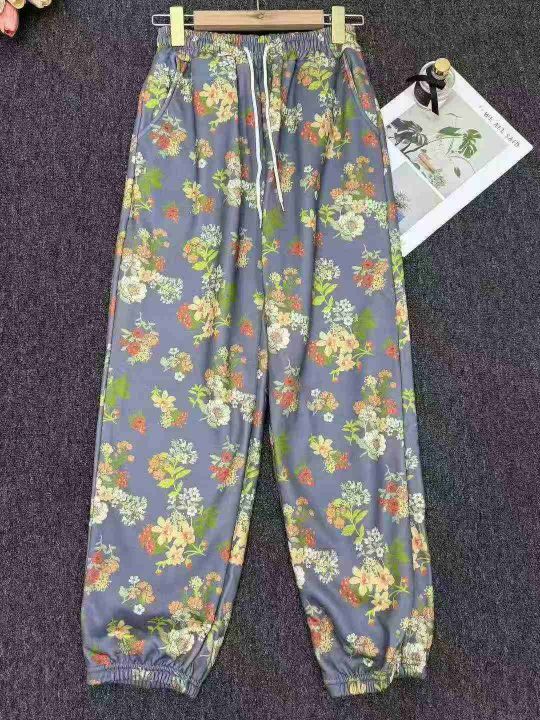 圣诞年秋冬新款加绒加厚洋气束脚哈伦裤网红欧洲站复古印花女卫裤,独立包装,291件,全清6.9