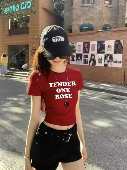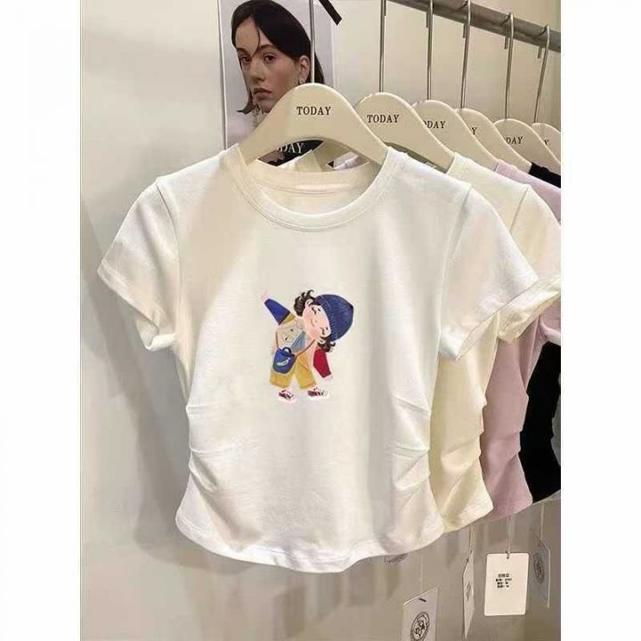 韩系vibe超好看抽褶收腰纯棉短袖T恤女夏季新款时尚百...