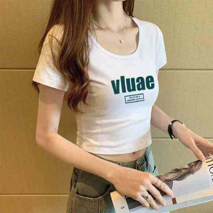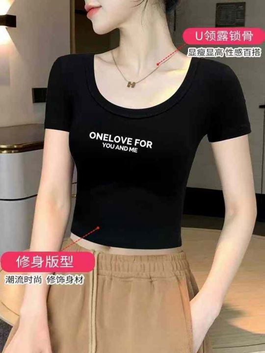 露脐上衣女高腰紧身设计感辣妹夏纯棉短款t恤甜辣妹正...