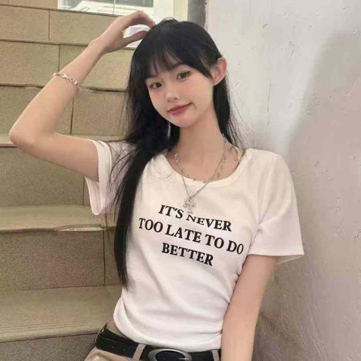 韩系vibe超好看抽褶收腰纯棉短袖T恤女夏季新款时尚百...