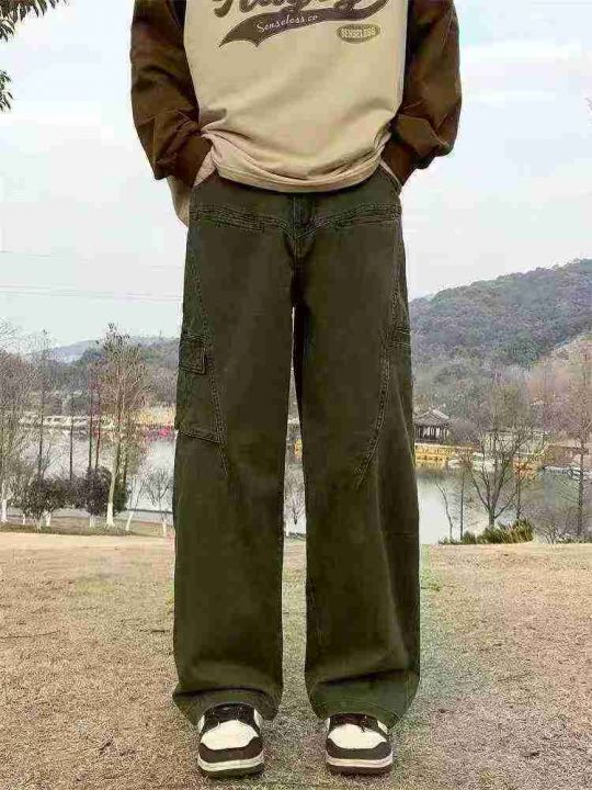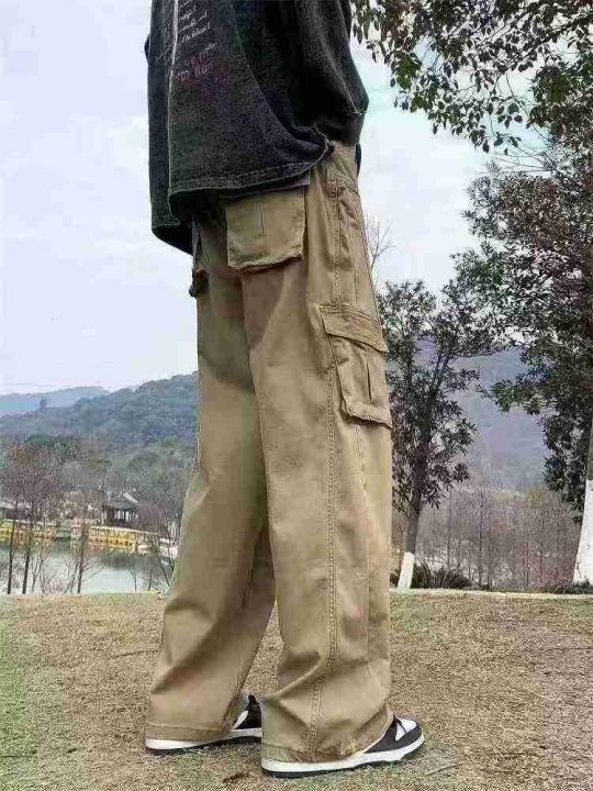 美式复古水洗棉阔腿工装伐木裤男女潮牌直筒宽松休闲裤...