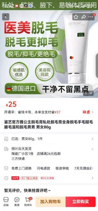 鉴艺官方雅公主脱毛膏私处脱毛膏全身脱毛手毛腿毛腋毛温和脱毛男男 男女80g...
