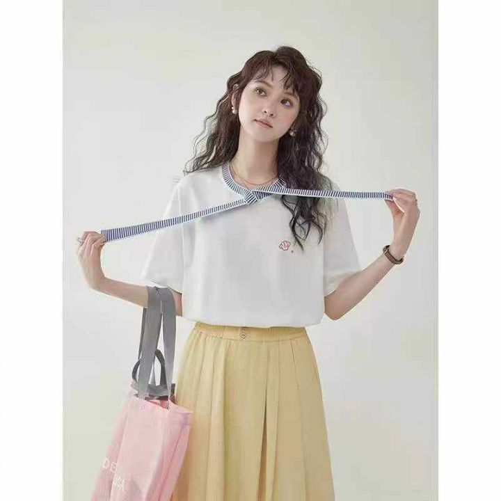 全清7.8 分货➕1 法式拼色飘带夏季设计感刺绣减龄女士纯棉短袖 数量180...