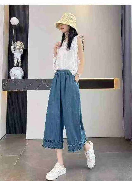夏季新款花边拼接纯色减龄显瘦直筒阔腿牛仔裤,独立包装带吊牌,码数M-3XL...