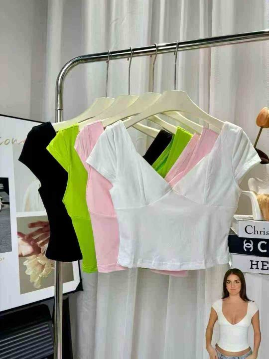 22000多件纯欲性感低胸v领泡泡短袖t恤女夏季甜辣妹绝美显身材修身上衣,尺码S~4XL,面料软糯高弹力,福利秒杀3.8
