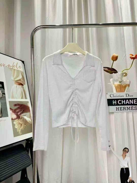 115件长袖t恤女辣妹炸街减龄v领polo针织衫内搭抽绳短款高腰露脐上衣潮,尺码S-XL,独立包装!高弹力,全清8.8。 货号:24862