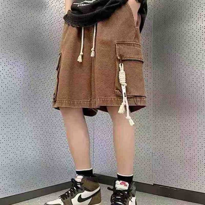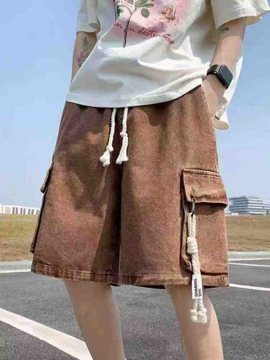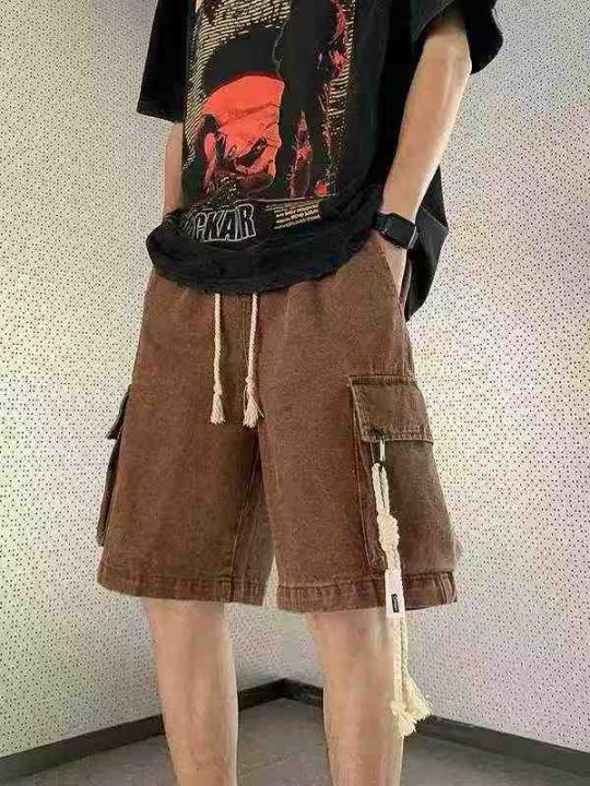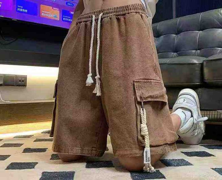 松紧腰工装牛仔短裤男款夏季薄款潮牌宽松大码短裤80件...