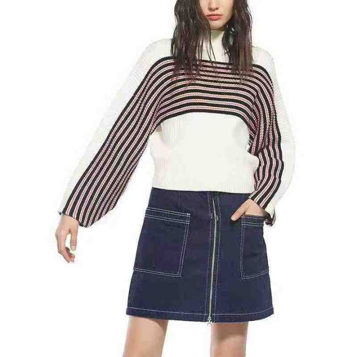 [月亮]:复古条纹撞色简约时尚针织毛衣上衣