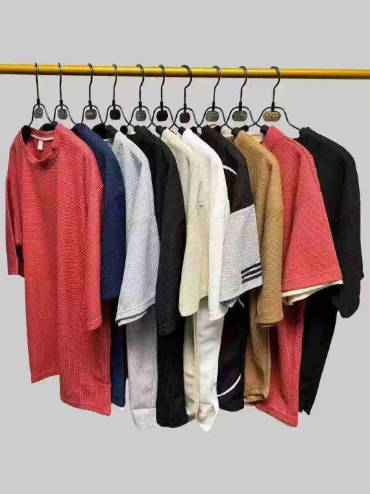 男装时尚潮流宽松休闲华夫格短袖T,小整带杂,数量600件左右,码数1-7码,品质可,有独立包装。。 货号:24862