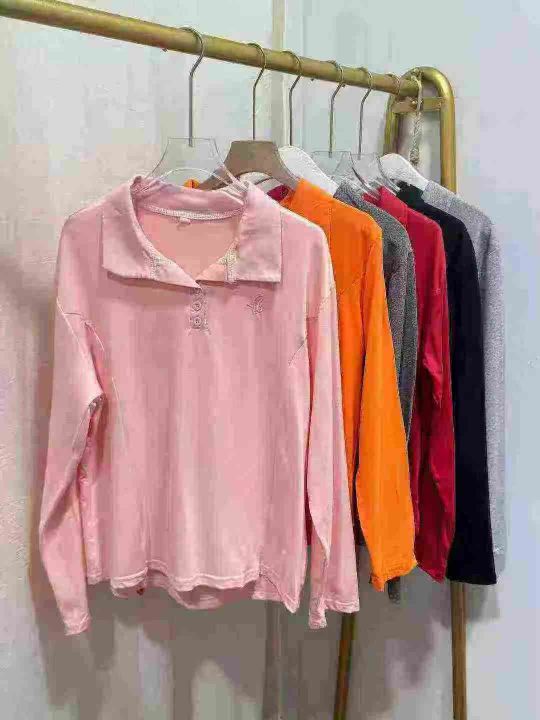 春秋新款洋气减龄百搭翻领POLO上衣简约设计感纯色长袖t恤衫,数量1740件,...