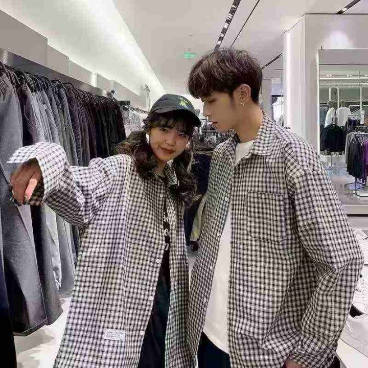 新款长袖衬衫男女时尚潮流百搭撞色格子衬衫上衣服男外套,图片2个款,M-3XL...