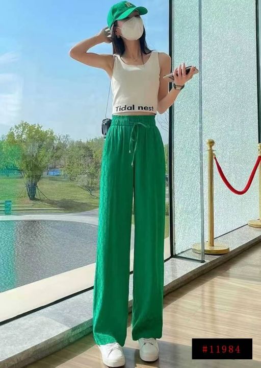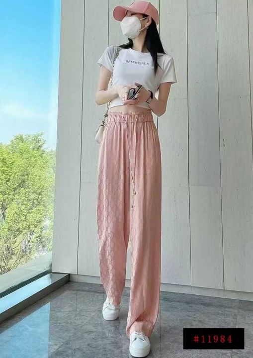 冰丝阔腿休闲裤179件8.8,面料柔软,有垂感,带亮闪印...