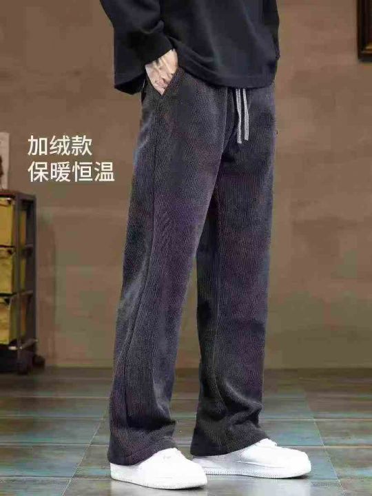 ☆ZH03款,冬季加厚保暖灯芯绒加绒阔腿直筒休闲裤,男...
