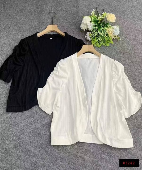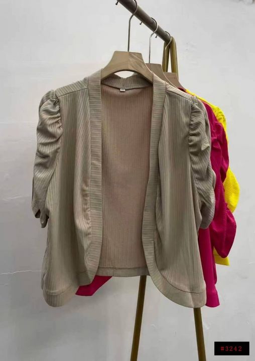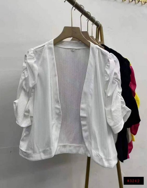 662件短款开衫外搭披肩外套。袖子褶皱设计,面料舒适...