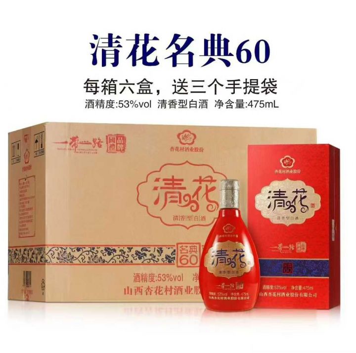 杏花村股份,清花系列,一箱6盒,手续齐全,带三个手提袋,还有1000多箱
