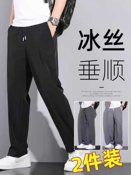 新款冰丝速干休闲裤子男士夏季薄款宽松显瘦西裤运动裤...