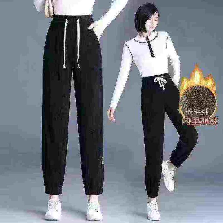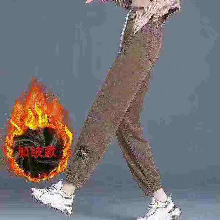 冬季新款加绒哈伦宽松毛裤时尚束脚百搭休闲裤冬天裤子...