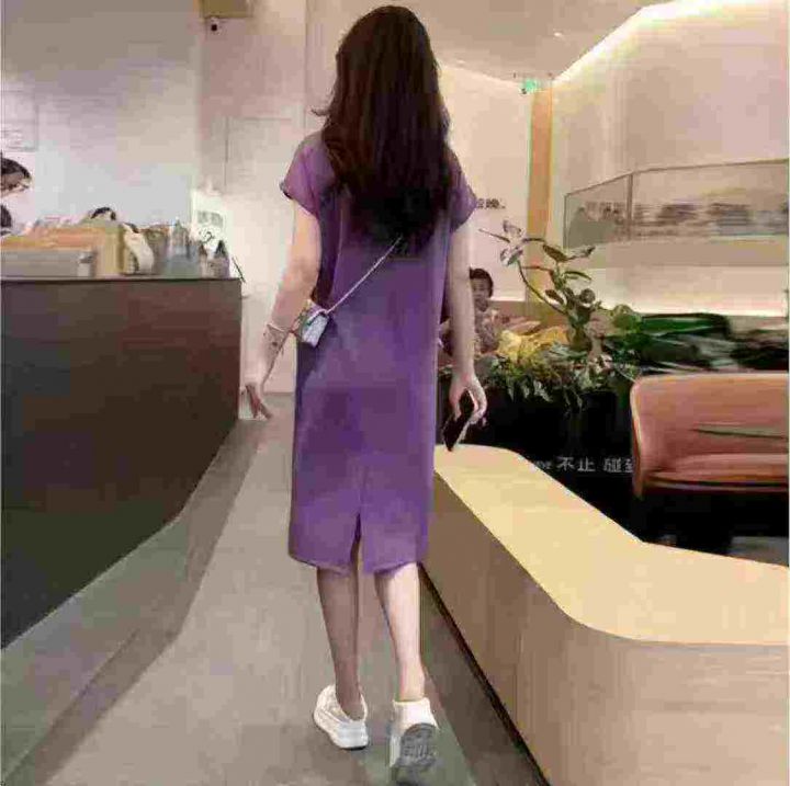 天猫在售款200件左右高品质韩版时尚气质休闲宽松开叉短袖连衣裙,码数M-XL,单款单色,独立包装带吊牌(图片模糊正常现象,联系️发原原视频)