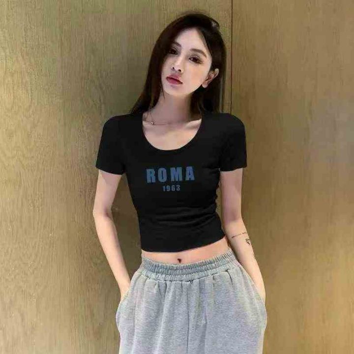 露脐上衣女高腰紧身设计感辣妹夏纯棉短款t恤甜辣妹正...