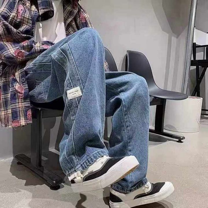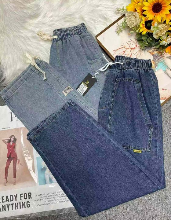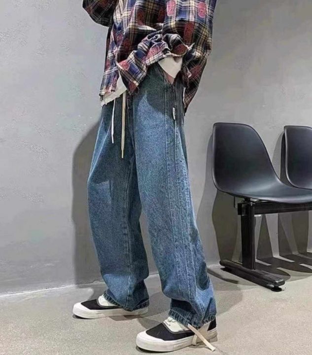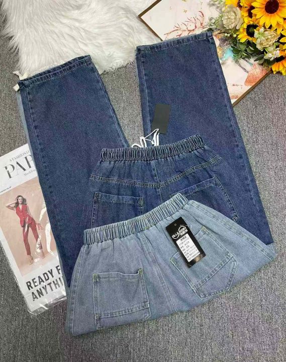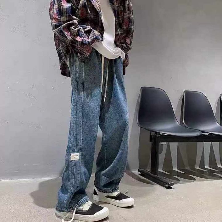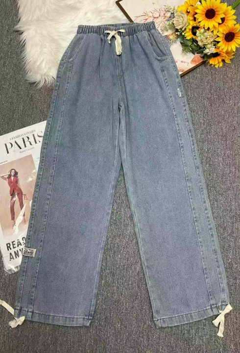春秋新款宽松百搭松紧腰直筒牛仔裤,独立包装带吊牌,...