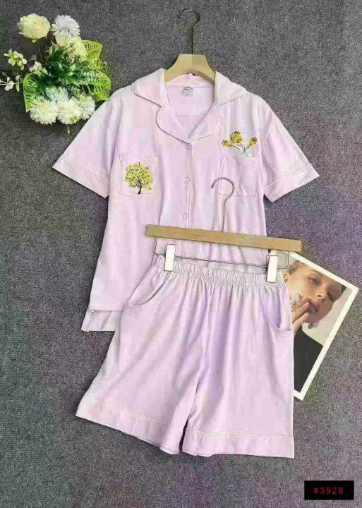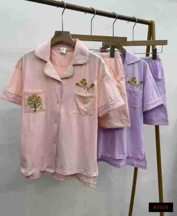 448套纯棉刺绣居家休闲套装。整款两个色,上衣不对称...
