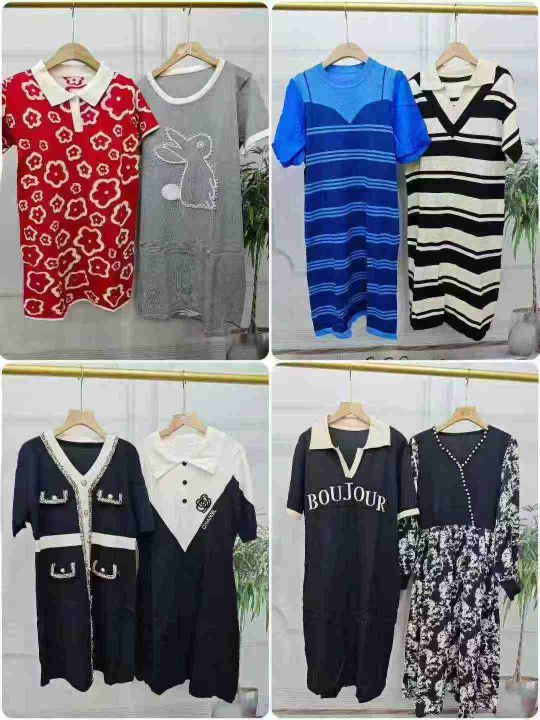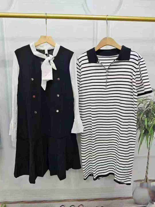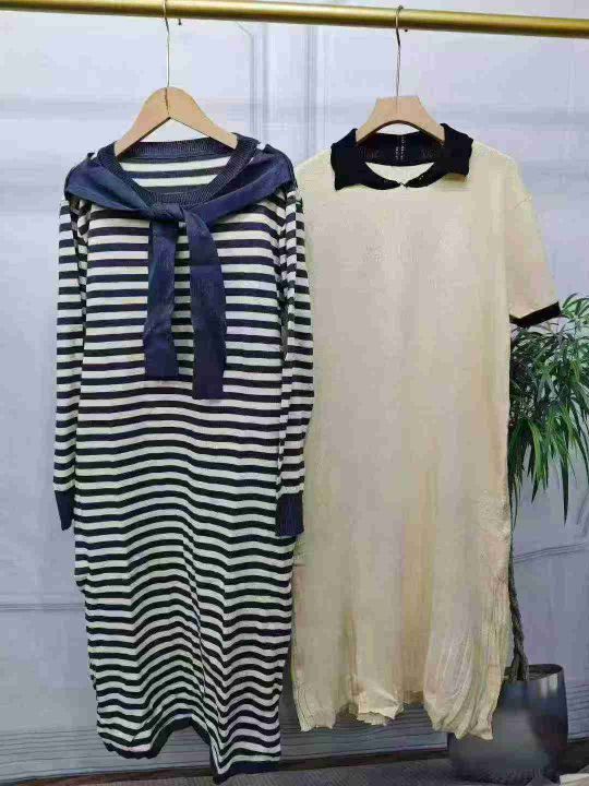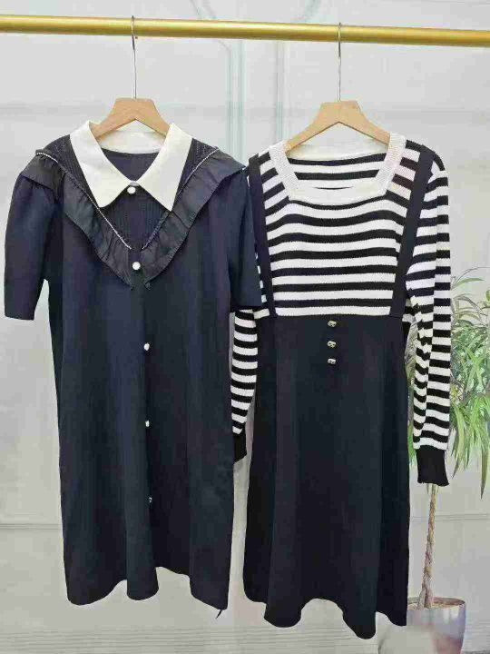 电商仓回收335条秋季新品设计款千金风条纹针织连衣裙系列,码数S-4XL。面料有弹力,每一个款都很好看,深色系为主,独立包装。分货➕1