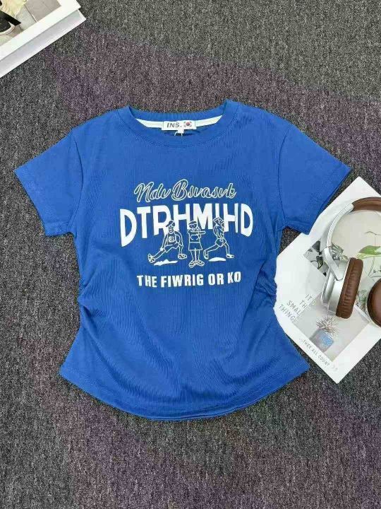 韩系vibe超好看抽褶收腰纯棉短袖T恤女夏季新款时尚百搭上衣,均码80-120斤可穿,后领包边到肩,版型做工起好,全部韩标,全部独立包装带吊牌,1800件,全清8.8分货➕1。 货号:24862