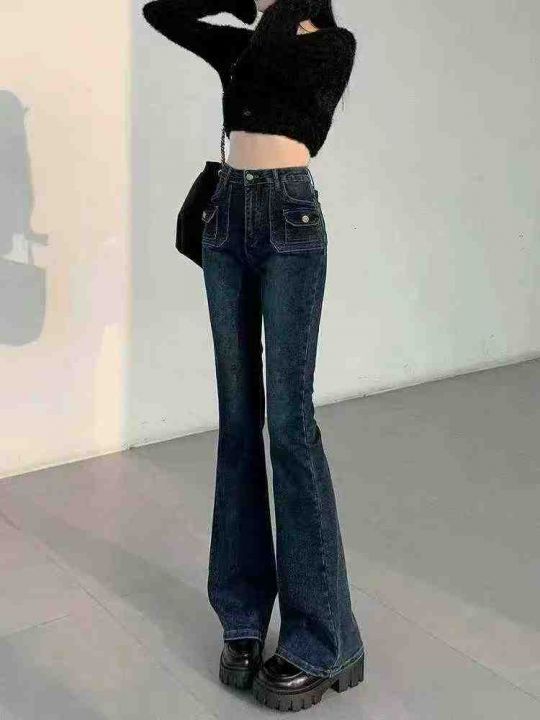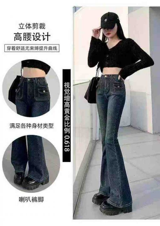 春秋新款网红复古高弹力设计款微喇叭牛仔裤,独立包装...