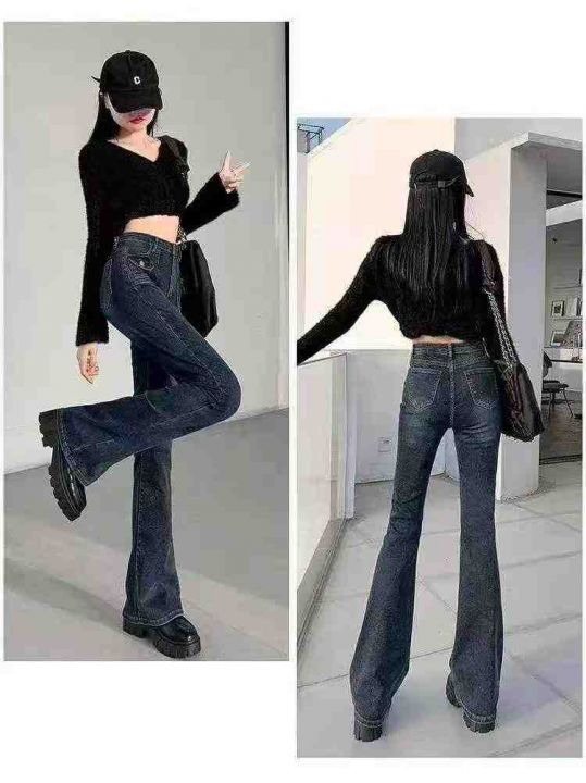 春秋新款网红复古高弹力设计款微喇叭牛仔裤,独立包装...