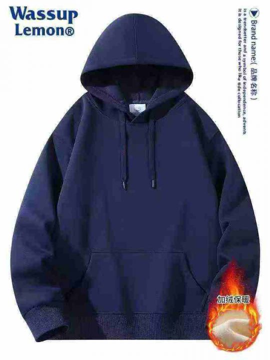 ☕️美式重磅纯色加绒连帽卫衣男女秋冬宽松加绒情侣纯...
